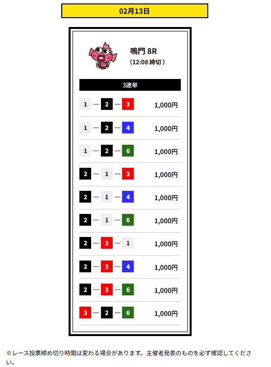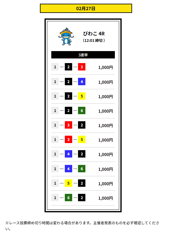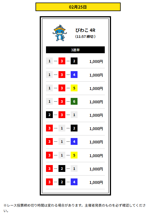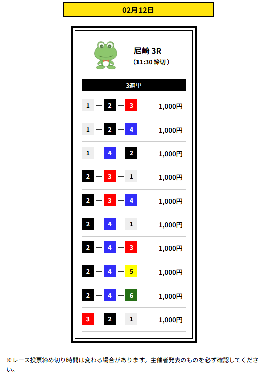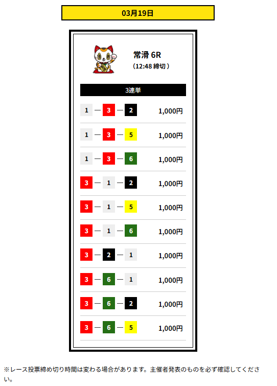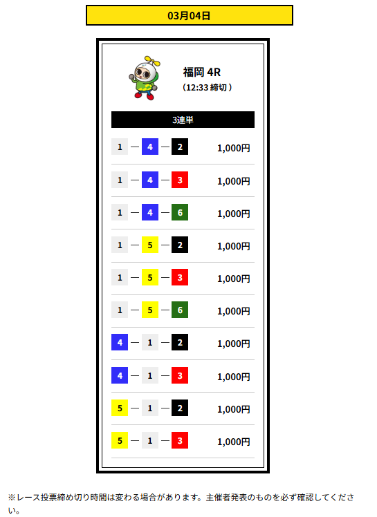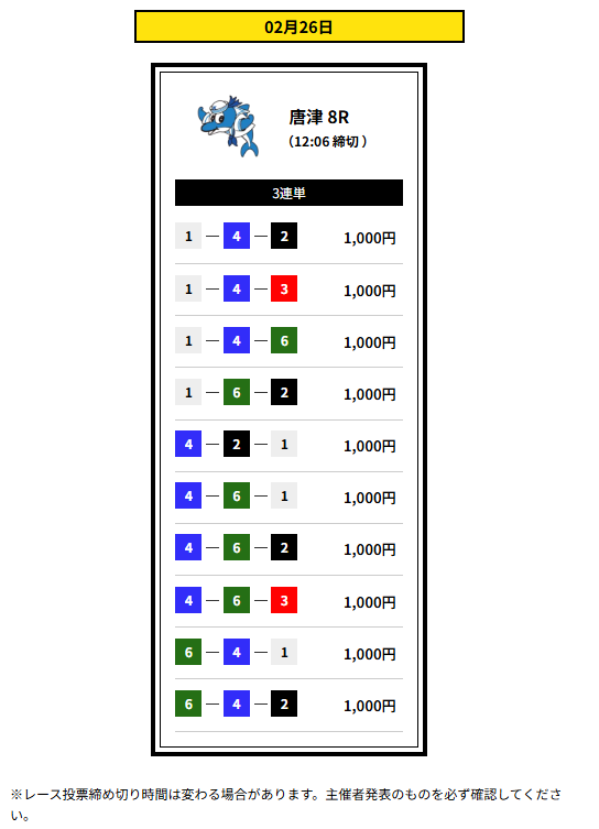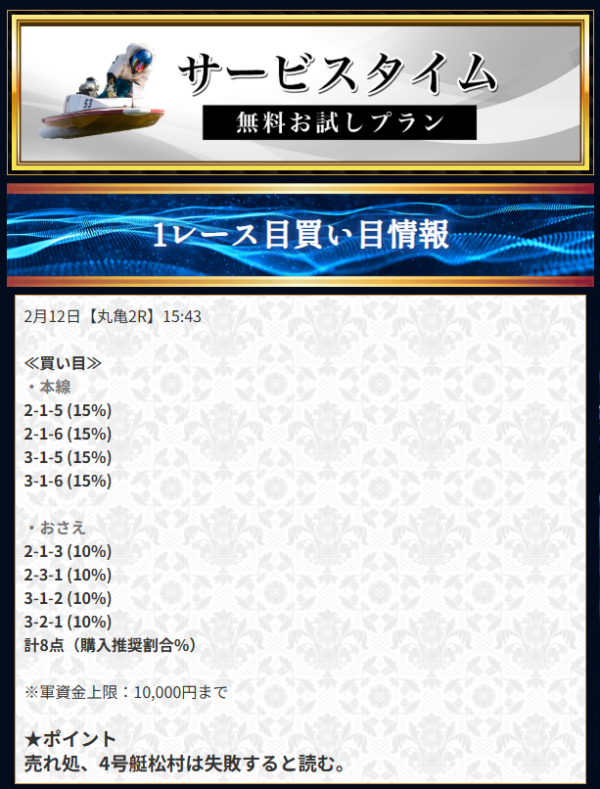 ここは2点予想とか個性派予想でもちゃんと当ててくるから、評価が高いんだろうなと私は思っています。先日のサービスタイム流石でした!