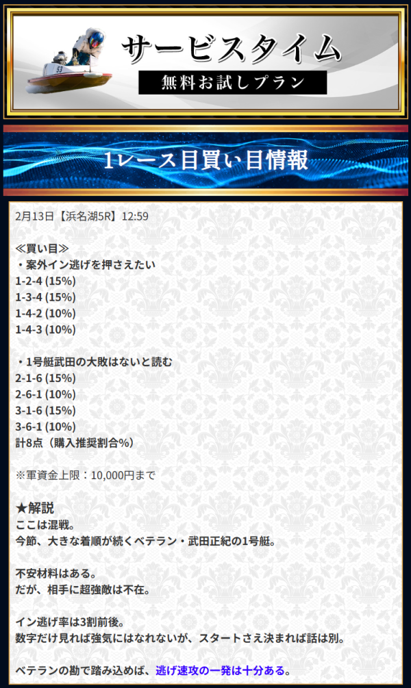 また、無料予想が買い目の見解付きなので、予想のプロの考え方を無料で学ぶこともできる。