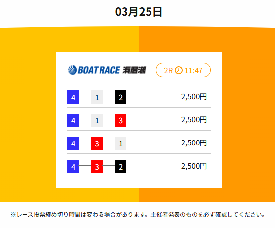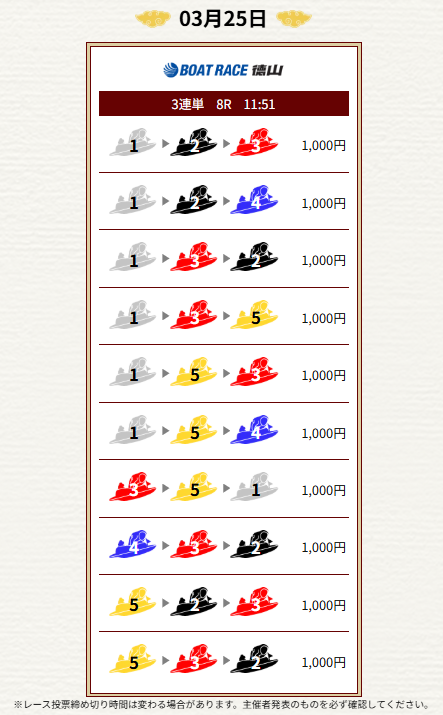 競艇サンダーバードは、3月18日の業界の巨人X氏で約92万円の払戻金を出していたぞ。