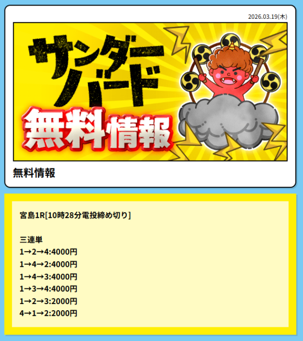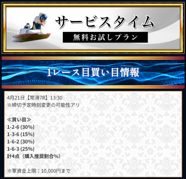 競艇サンダーバードは低価格プランでも高配当を狙えるぞ!