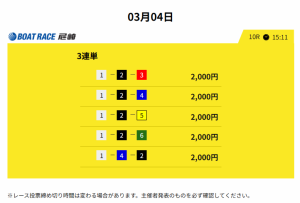 舟券代は10,000円、払戻金は112,500円で、約10万円のプラス収支だ。