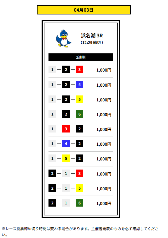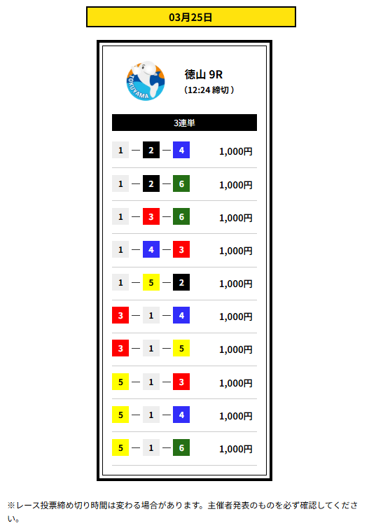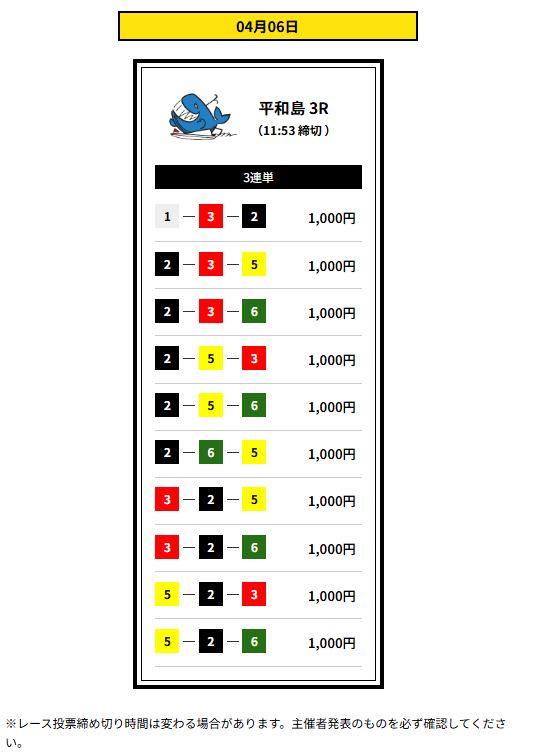 業界の巨人X氏は、3レース分の三連単の買い目が提供されるプランだ。