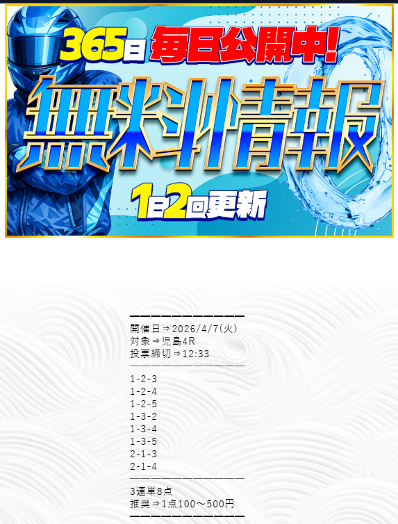 2026年4月7日のランキング更新では、的中結果と口コミを踏まえて、順位を変更している。