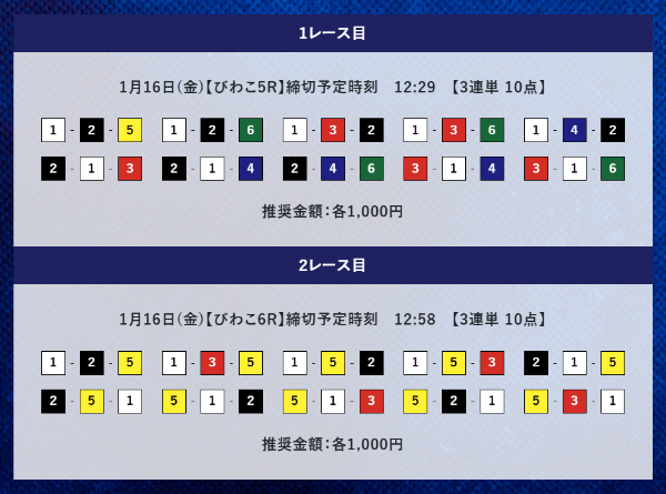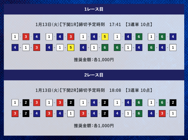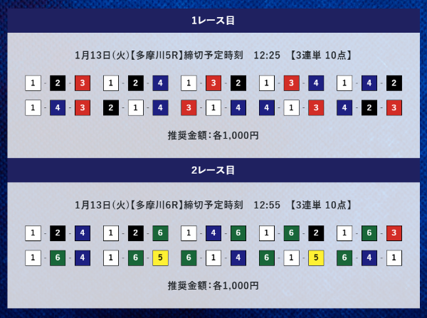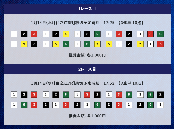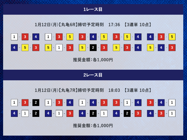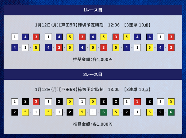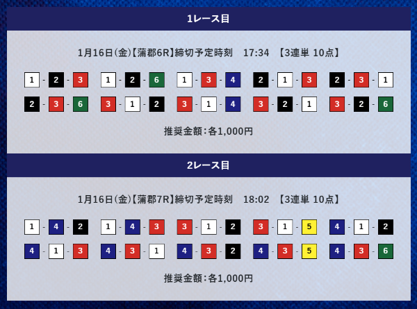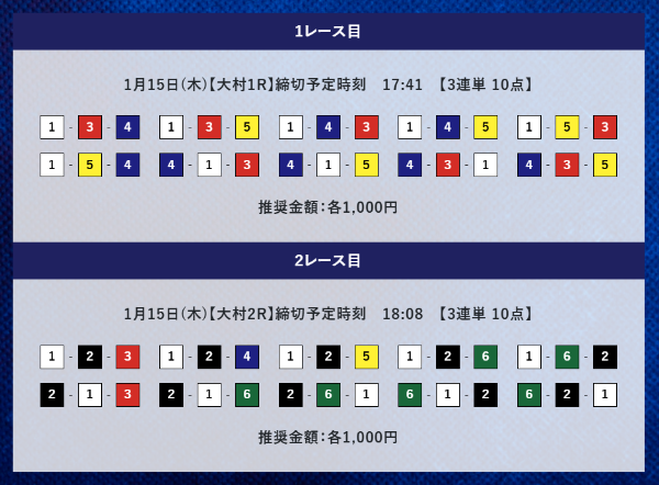 買い目の公開時間は、デイが12時00分、ナイターが17時00分と書かれていたな。
