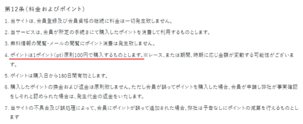 | 有料予想 | ポイント購入に記載ミスがある 情報料に対する目標金額が低い |