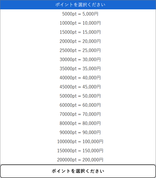 | 提供サービスの価格 | 0ポイント~400000ポイント |