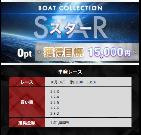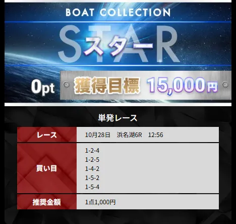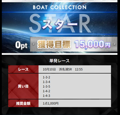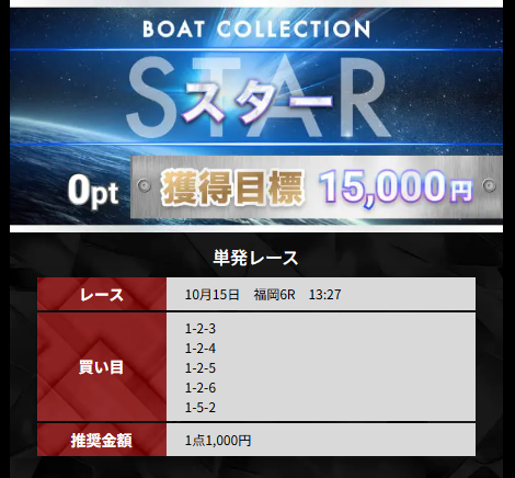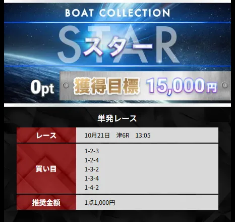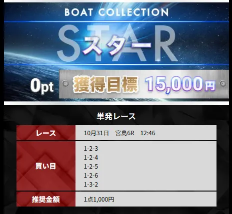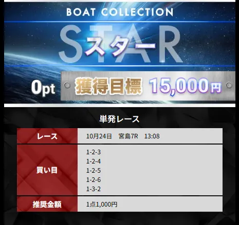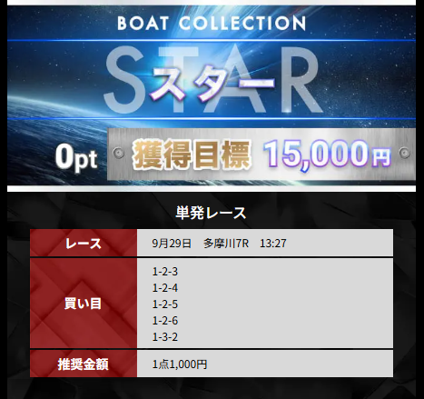 また、登録特典のポイントは、ボートコレクションの有料予想に参加するときに使用できる。