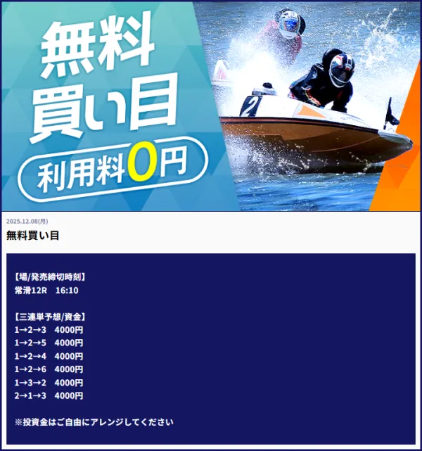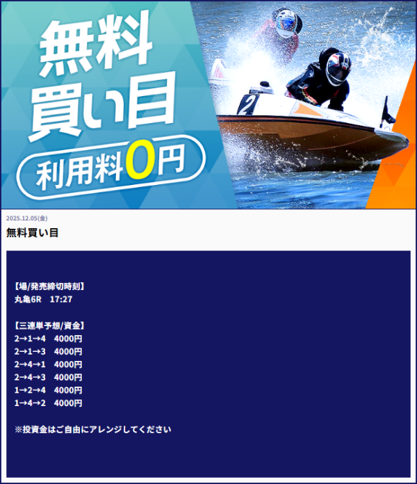 | 2025年12月5日 | 無料予想 | 126,400円 |