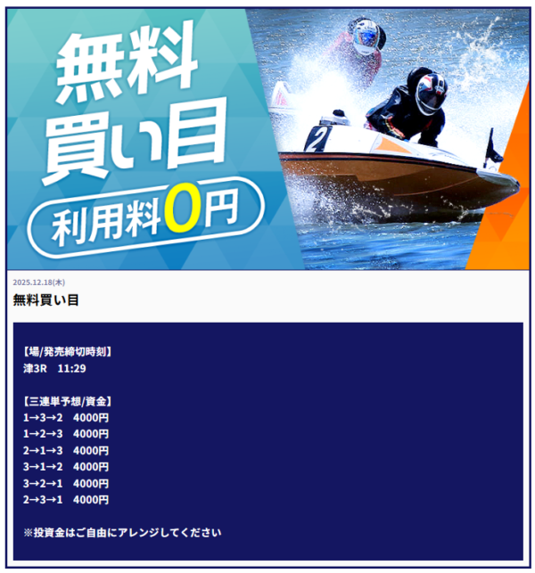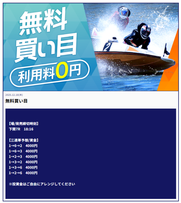 | 2025年12月18日 | 無料予想 | 16,000円 |