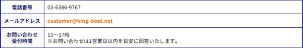 | メールアドレス | customer@king-boat.net |