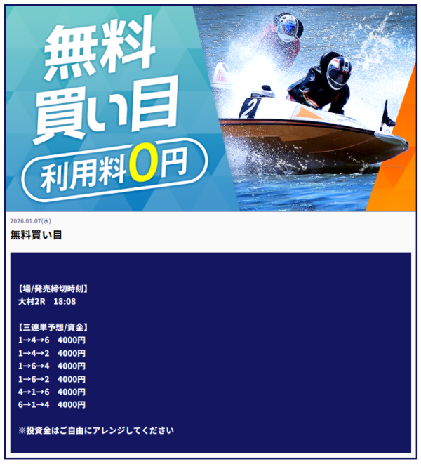 | 2026年1月7日 | 無料予想 | 206,000円 |