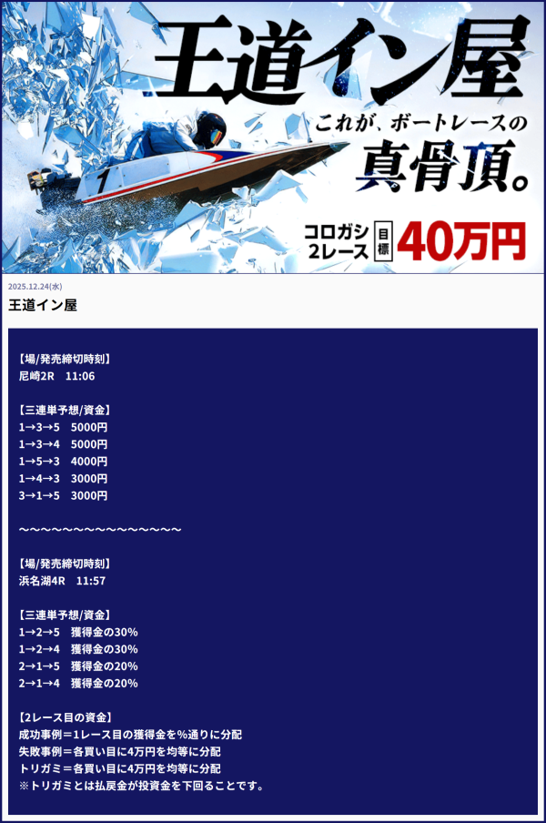 - 毎日2レース分の買い目を公開