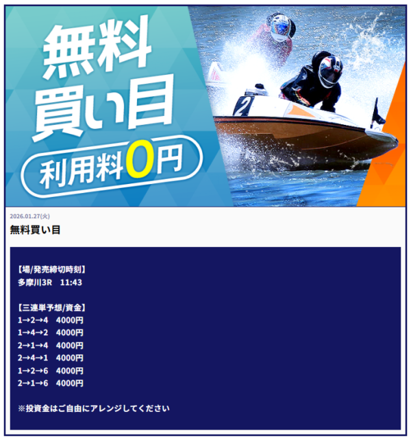 | 2026年1月27日 | 無料予想 | 24,000円 |