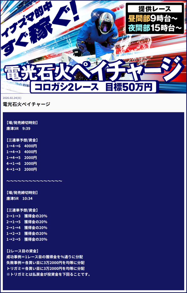 | 2026年2月24日 | 無料予想 | 12,000円 |