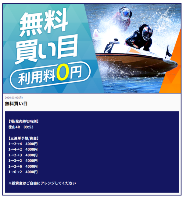 | 2026年3月2日 | 無料予想 | 14,000円 |