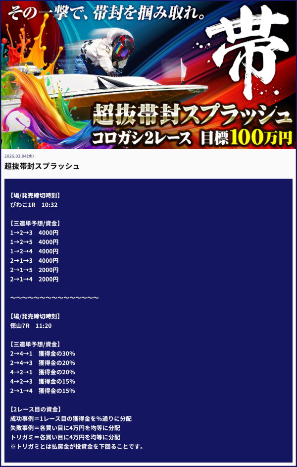 | 2026年3月5日 | 無料予想 | 46,800円 |