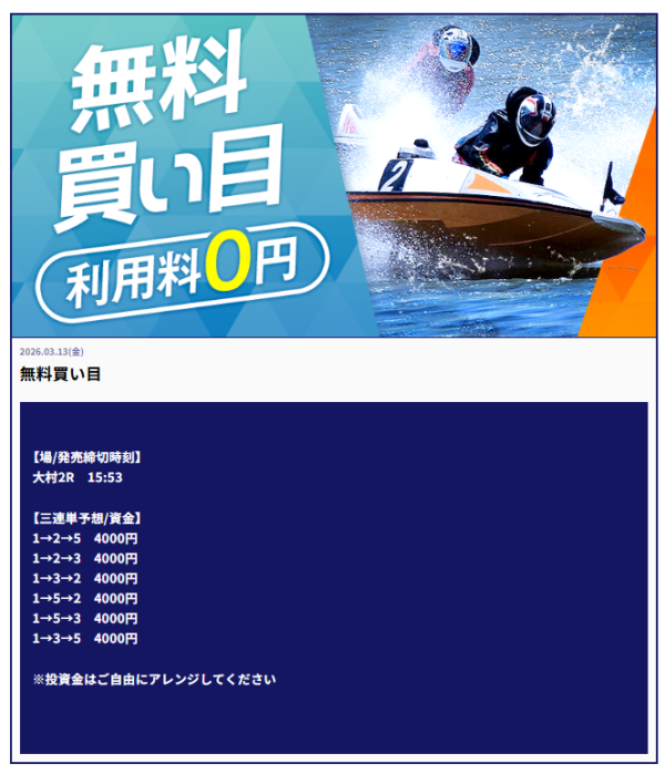 | 2026年3月13日 | 無料予想 | 32,000円 |