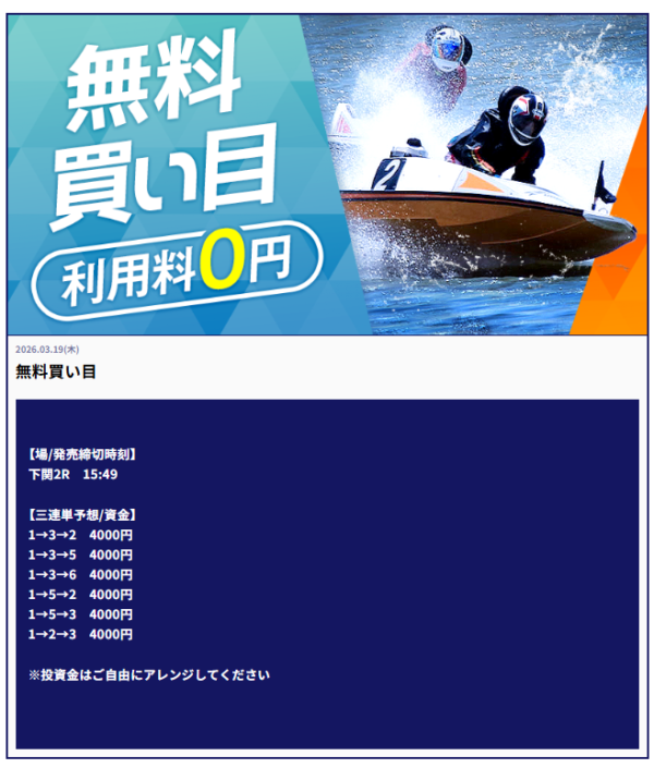 | 2026年3月19日 | 無料予想 | 47,600円 |