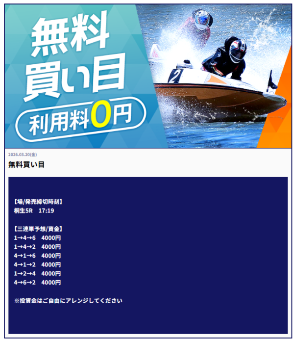 | 2026年3月20日 | 無料予想 | 25,600円 |