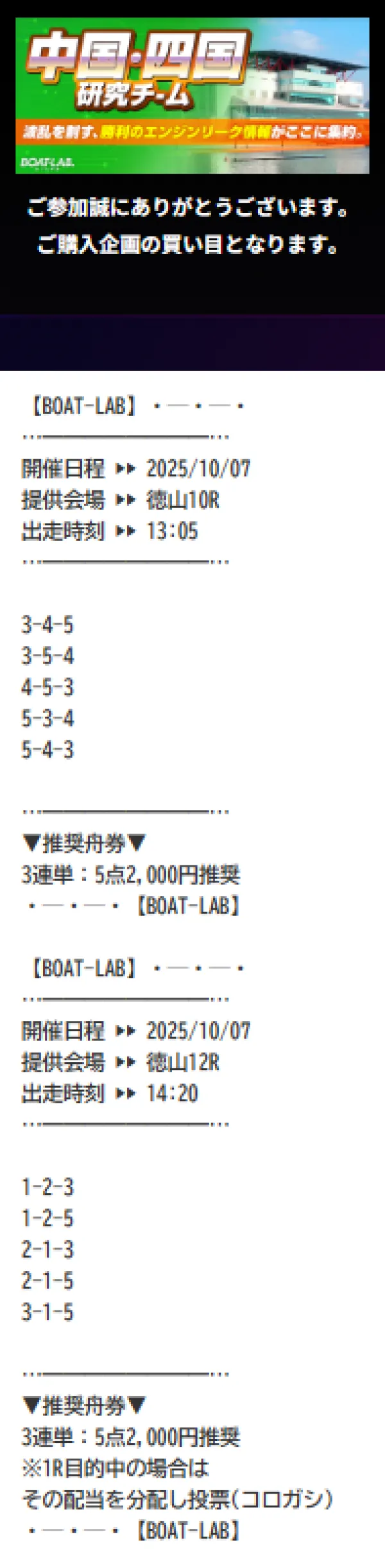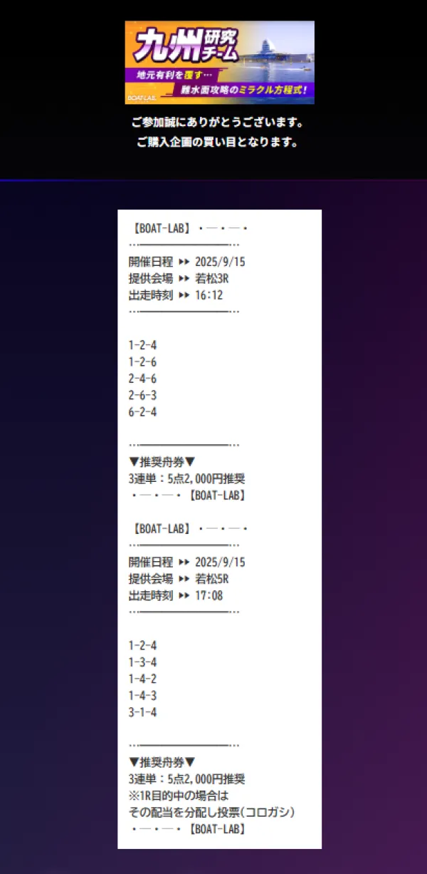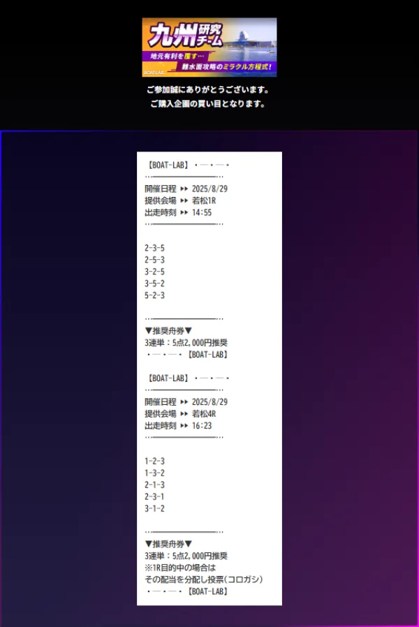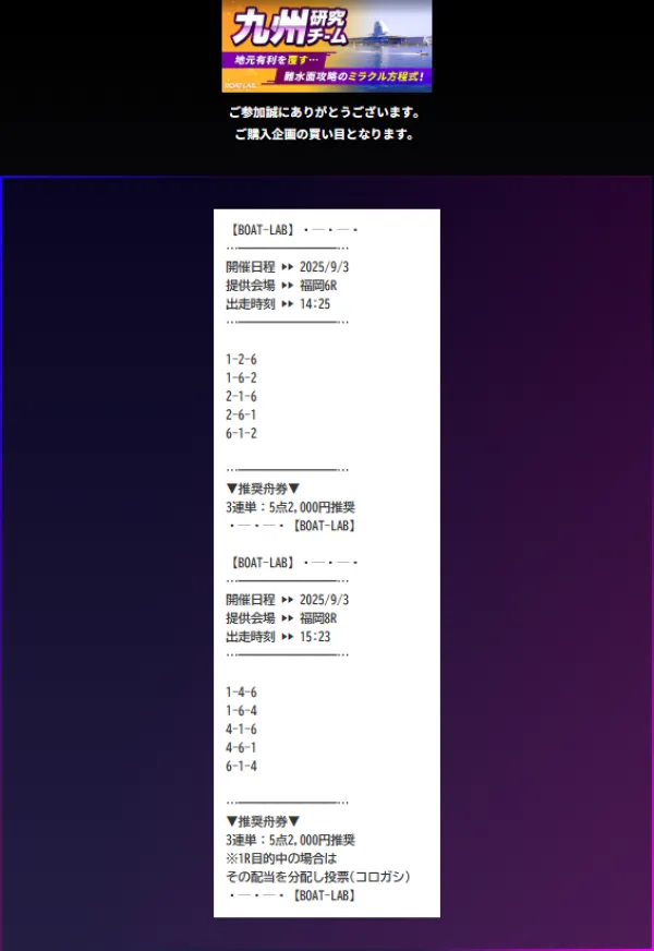ボートラボの九州研究チームは、情報料6万円で、目標配当160万円の地域限定情報だ。