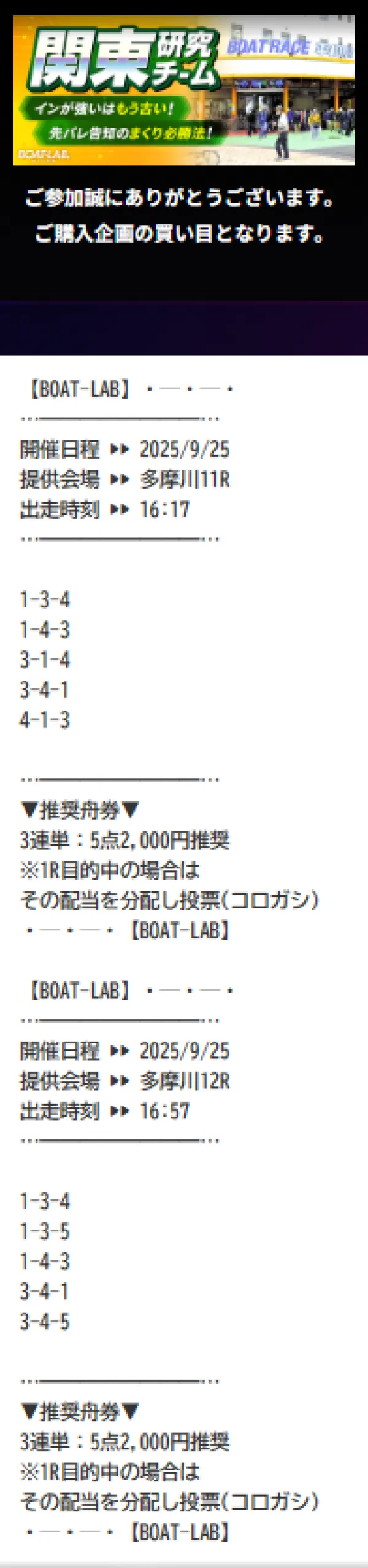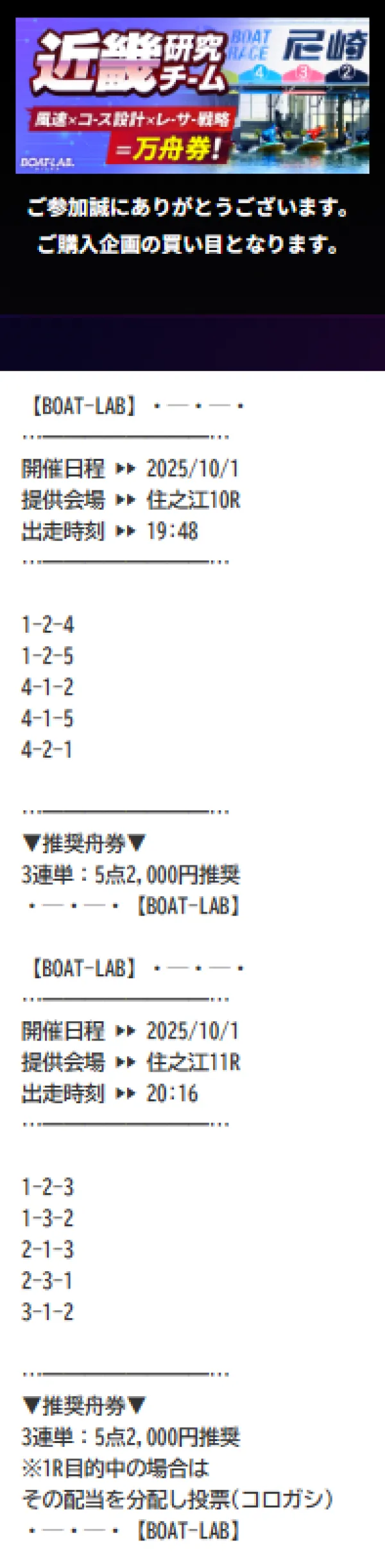 ボートラボの近畿研究チームは、情報料6万円で、目標配当160万円の地域限定情報だ。