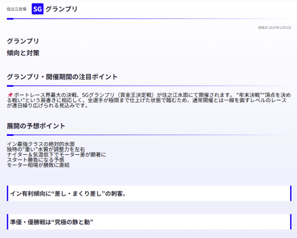 例えば、この記事の執筆時点※では、12月中旬のグランプリの傾向と対策が書かれていたな。