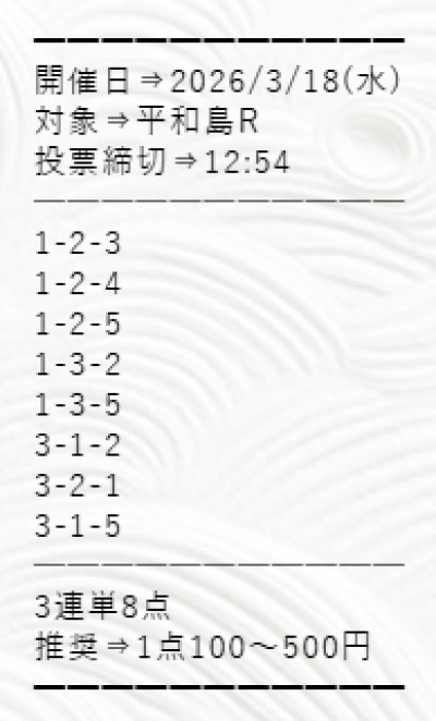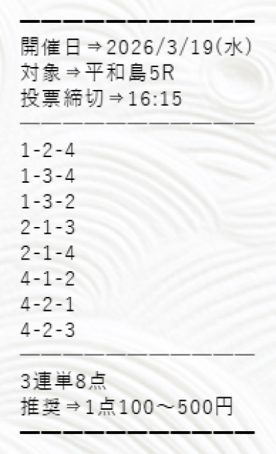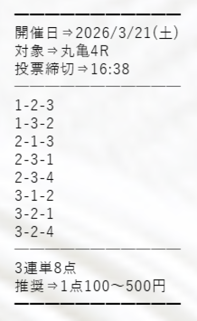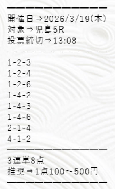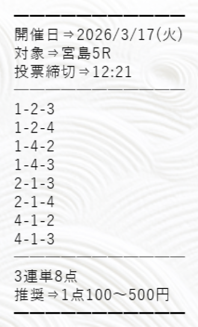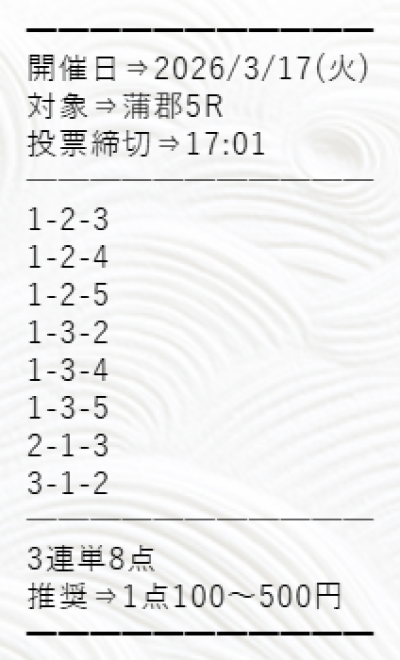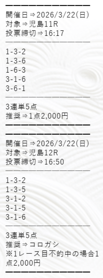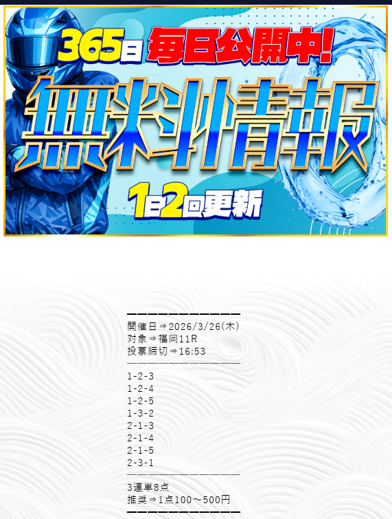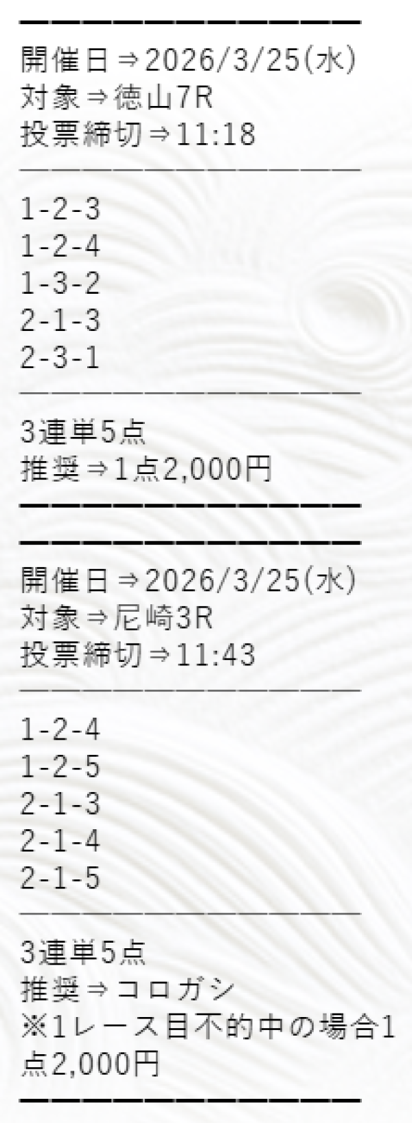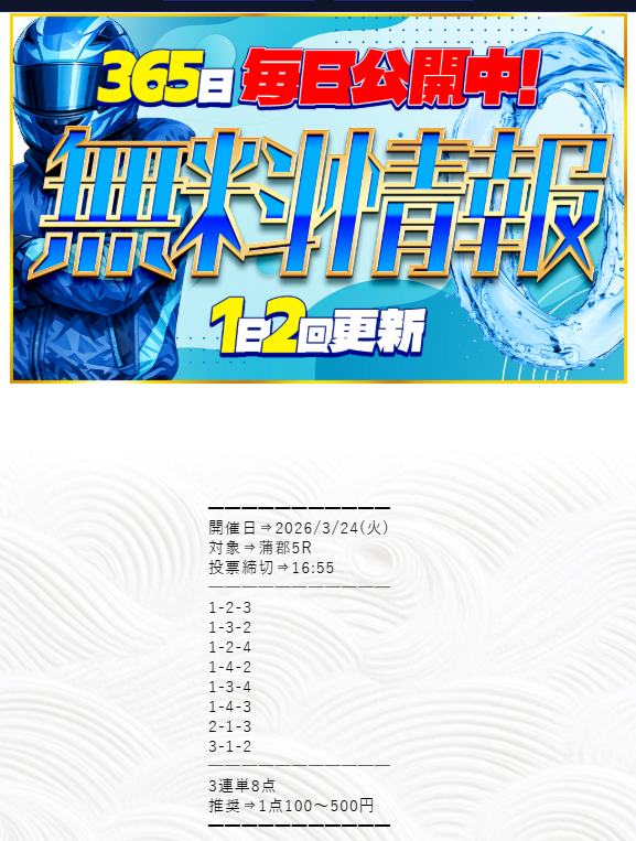 | 2026年3月24日 | 無料予想 | 5,500円 |