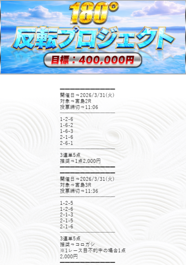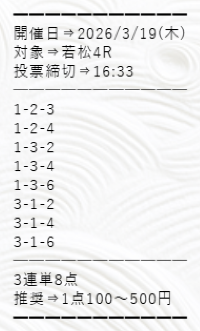 | 2026年3月19日 | 無料予想 | 6,000円 |