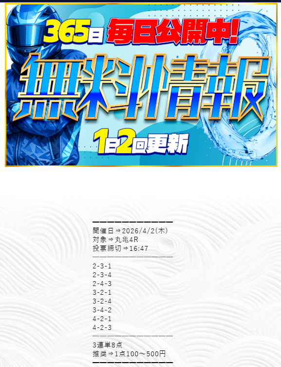 | 2026年4月2日 | 無料予想 | 3,600円 |