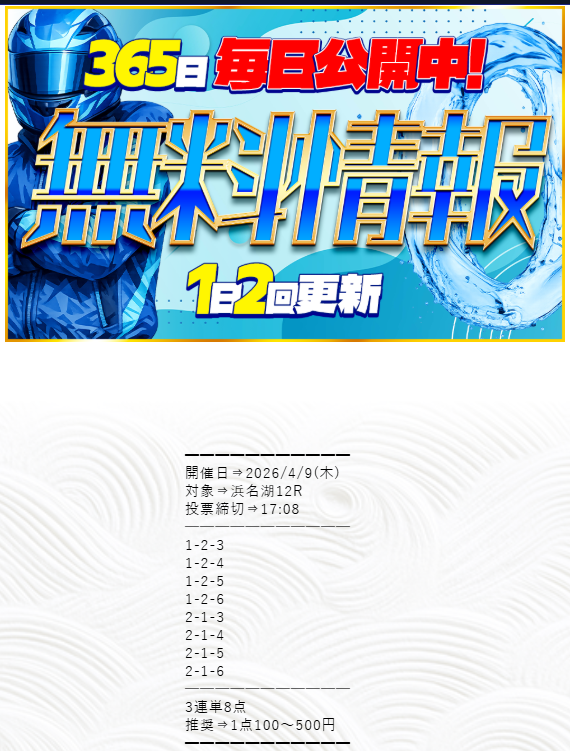 | サイト内容 | LINEの友だち追加で無料登録 注目レースや注目選手を解説 |