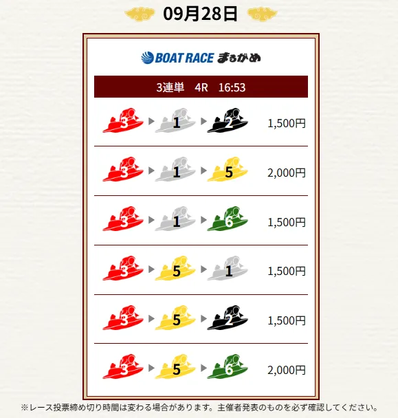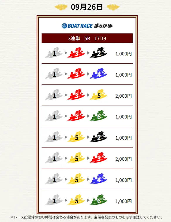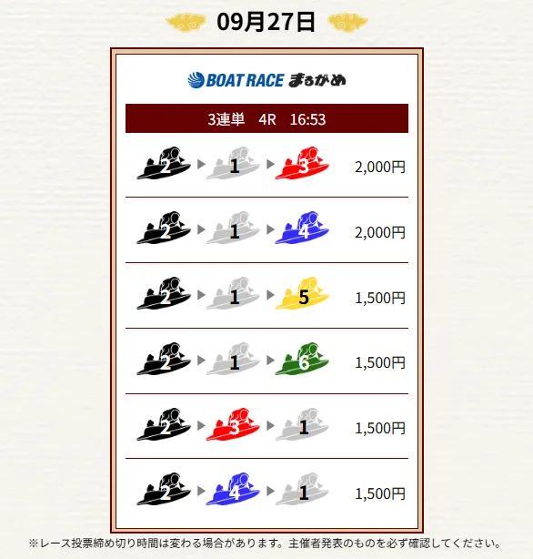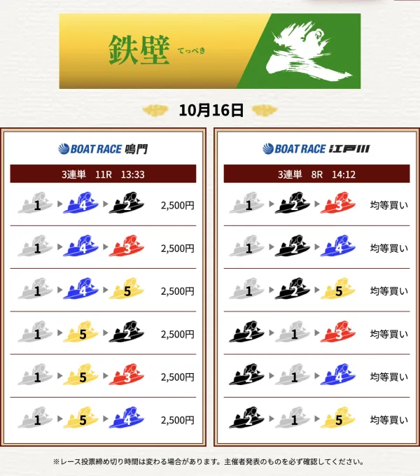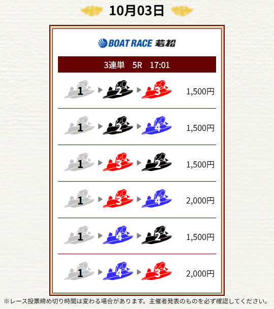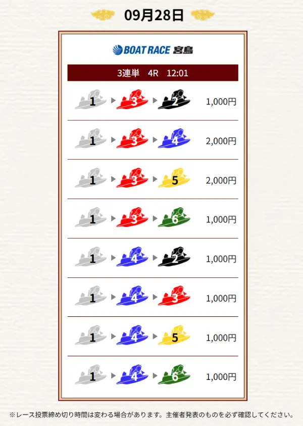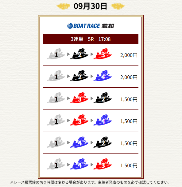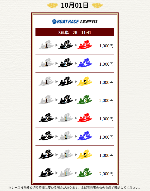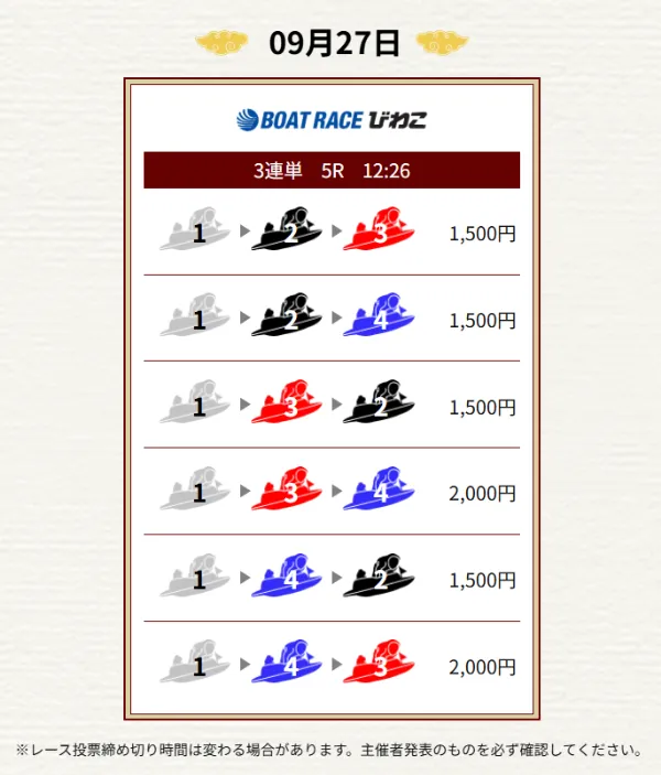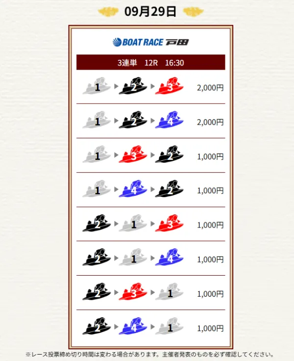 - 毎日2レース分の買い目を公開