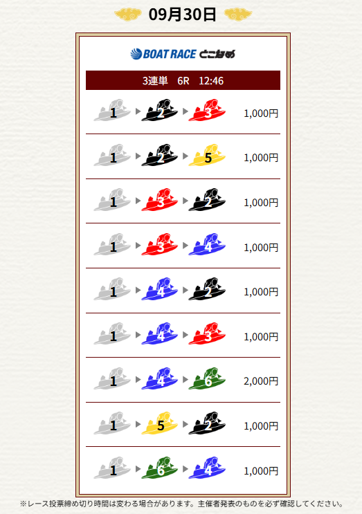 | 2025年9月30日 | 無料予想 | 10,000円 |