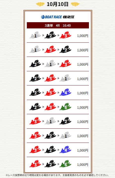 | 2025年10月1日 | 無料予想 | 10,950円 |