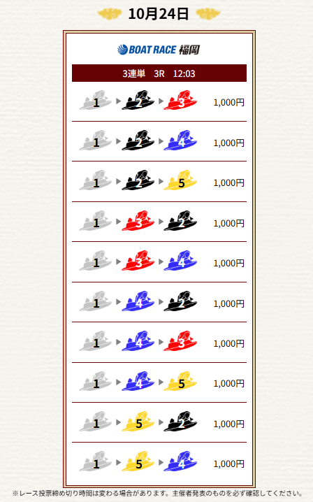 | 2025年10月24日 | 無料予想 | 5,000円 |