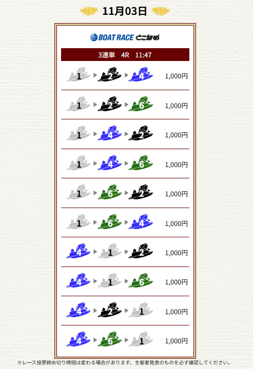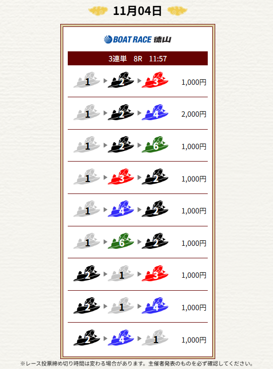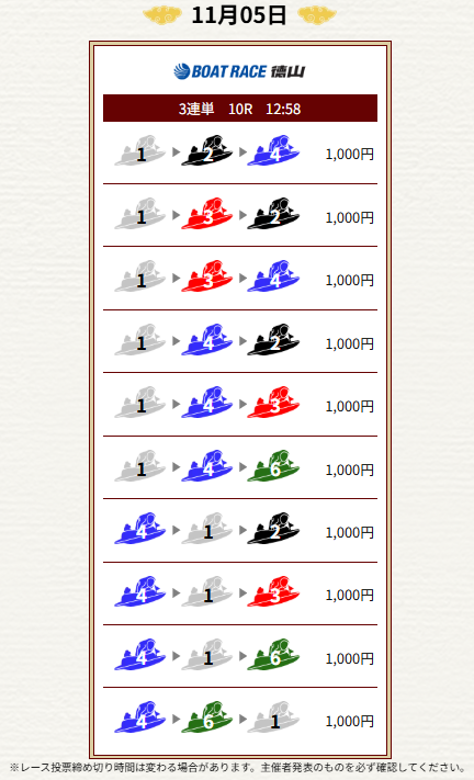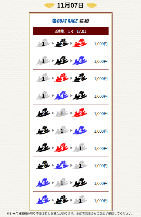 | 2025年11月4日 | 無料予想 | 10,000円 |