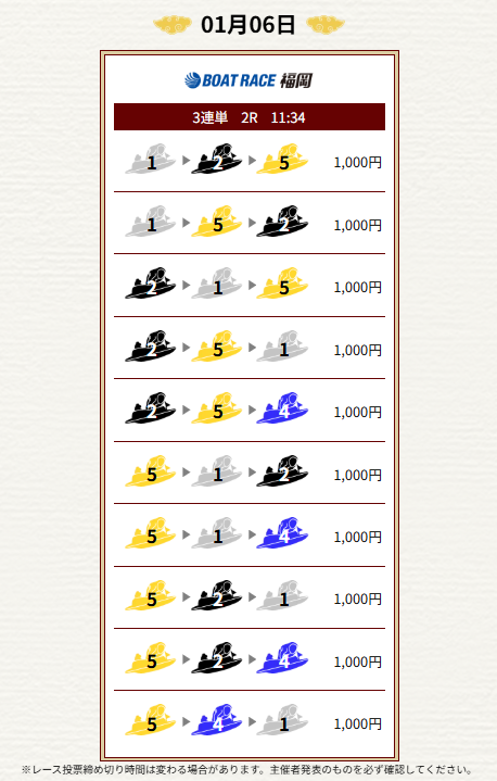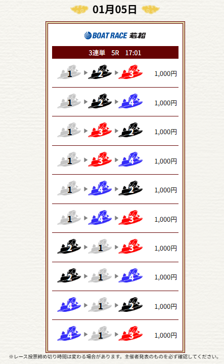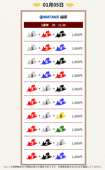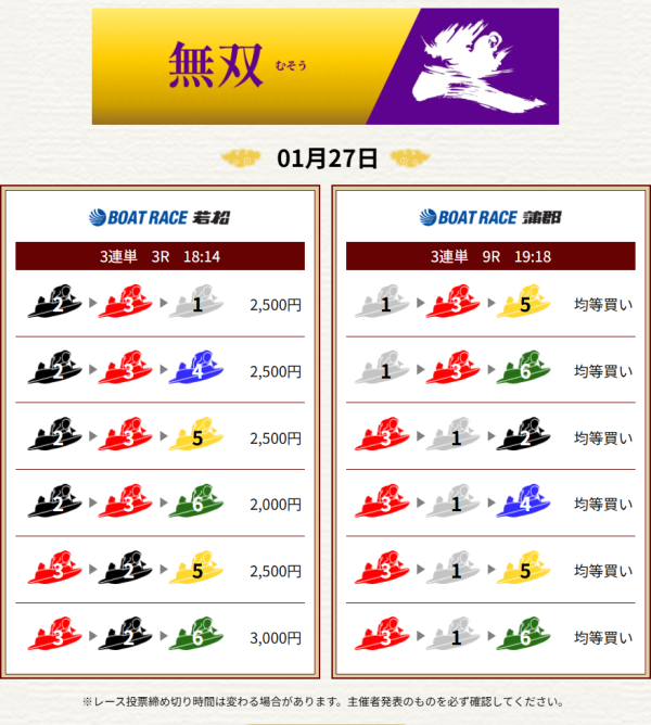 | 2026年1月5日 | 無料予想 | 11,500円 |