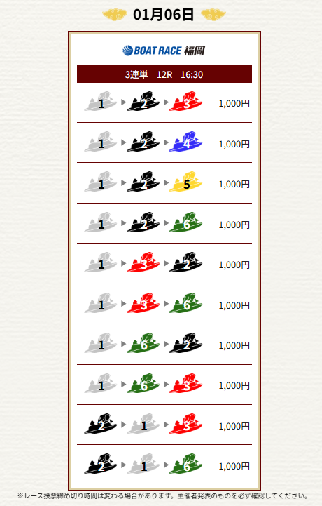 | 2026年1月6日 | 無料予想 | 11,400円 |
