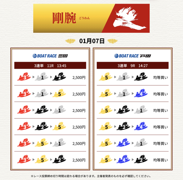 | 2026年1月5日 | 無料予想 | 7,600円 |