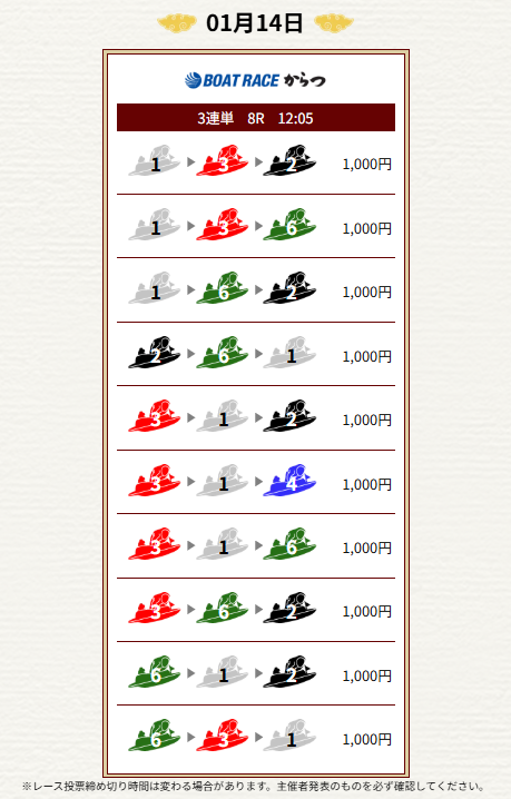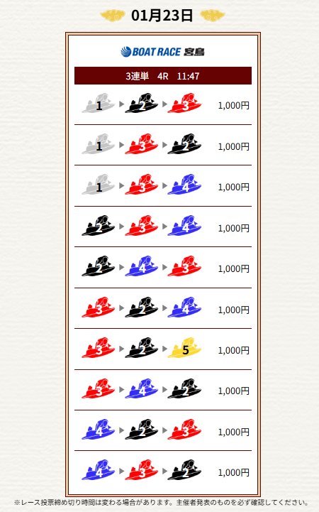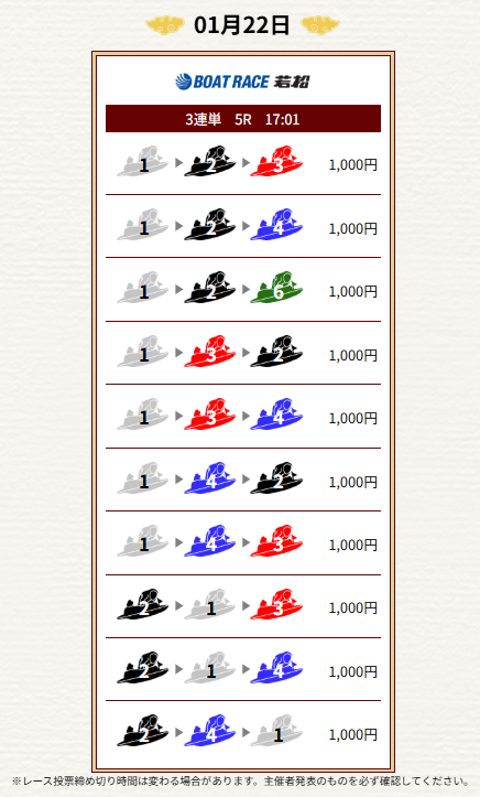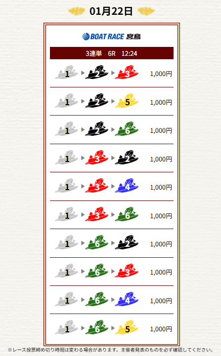 点数多い日あるけど、実際来る買い目は意外と整理されてて、