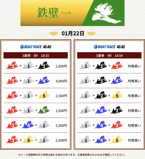 | 2026年1月22日 | 無料予想 | 12,600円 |