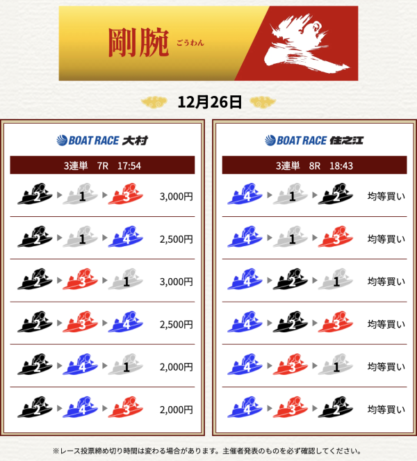 | 2025年12月5日 | 無料予想 | 10,500円 |