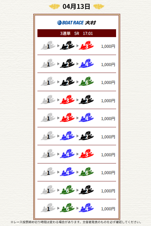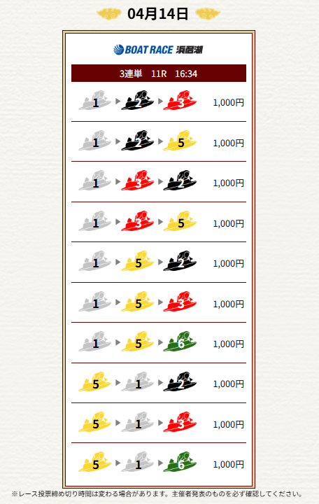 | 2026年4月14日 | 無料予想 | 10,800円 |