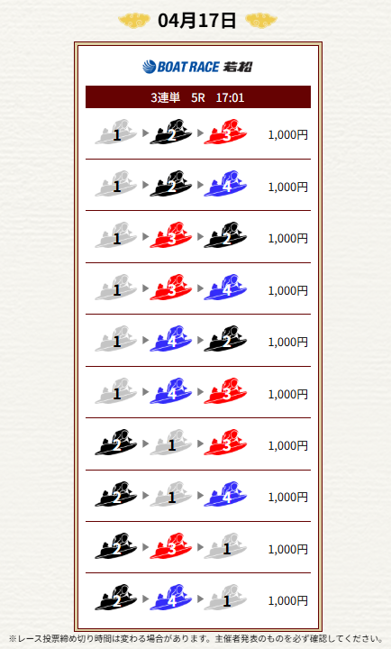 | 2026年4月17日 | 無料予想 | 23,200円 |