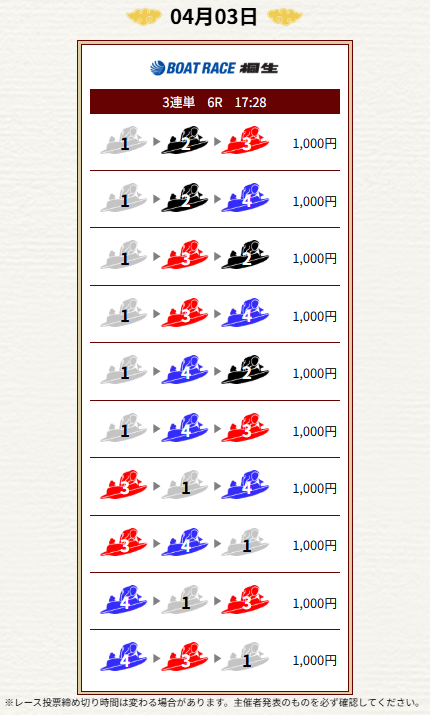 | 2026年4月3日 | 無料予想 | 47,900円 |