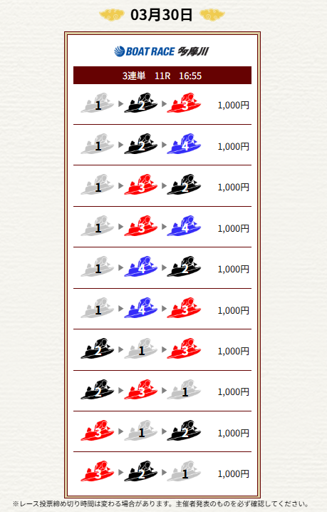| 2026年3月30日 | 無料予想 | 11,500円 |
