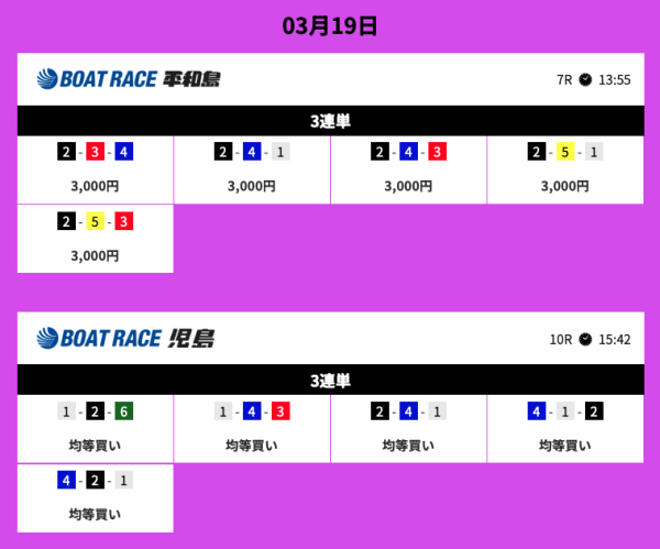 毎日2レース分の買い目を公開