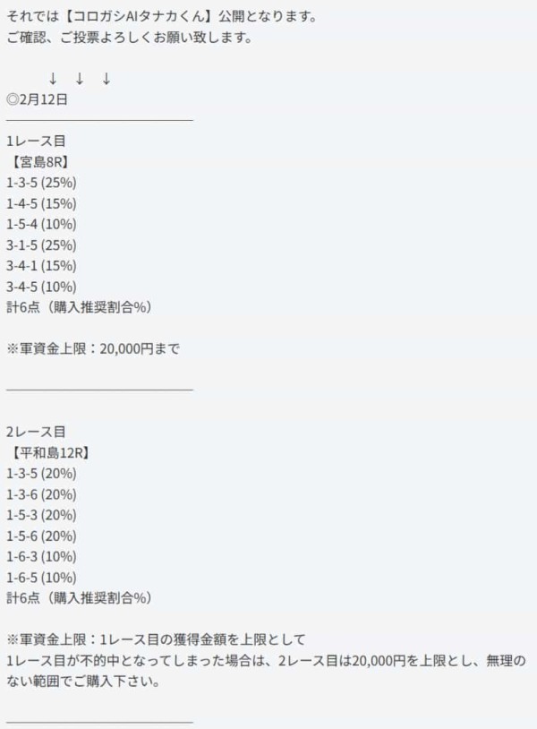 | 2024年2月8日 | 無料予想 | 43,600円 |