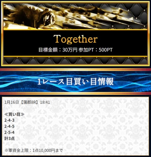 自分でも買い目を検討して、納得できる買い目のときだけ乗っかるのがおすすめだ。