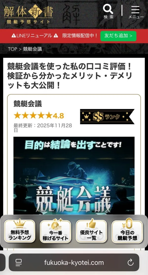 競艇会議は「目的は結論を出すことです」というキャッチコピーを掲げる競艇予想サイトだ。