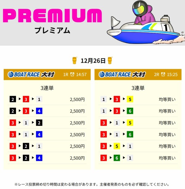 毎日2レース分の買い目を公開